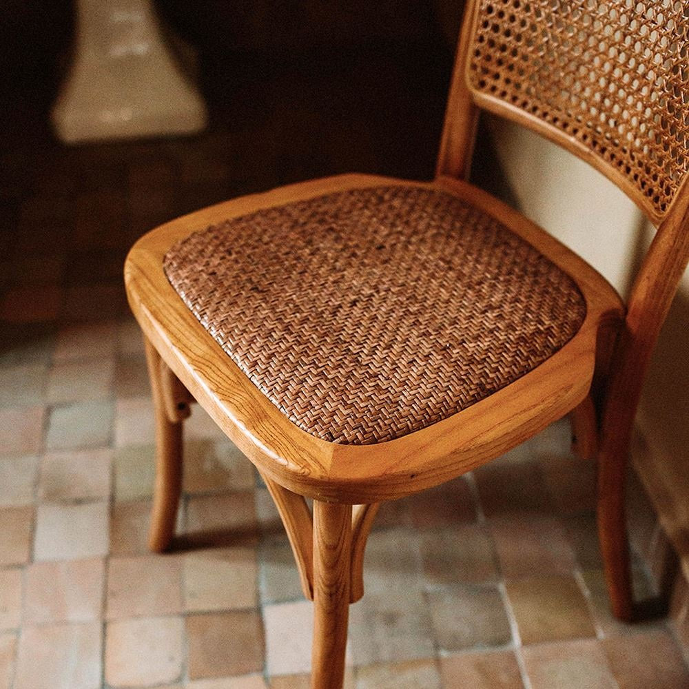 Con un bonito acabado en ratán natural tanto en el asiento como en el respaldo.