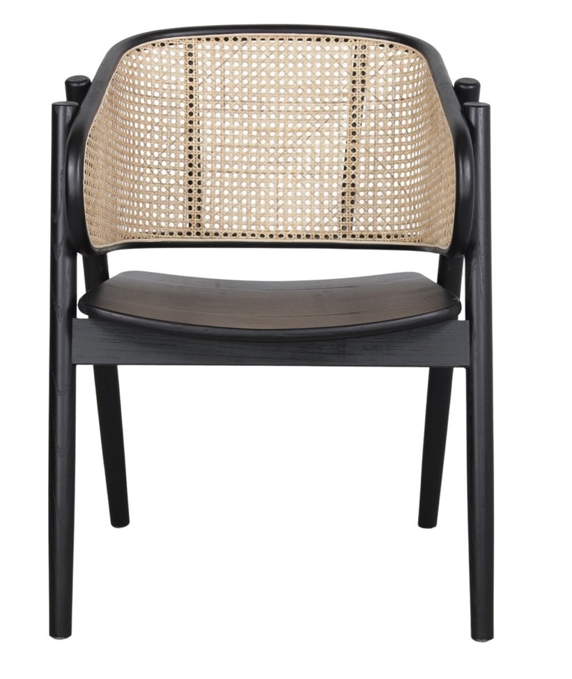Curvada al vapor, con bonitos reposabrazos, esta silla con un diseño peculiar, es de estilo Japandi.