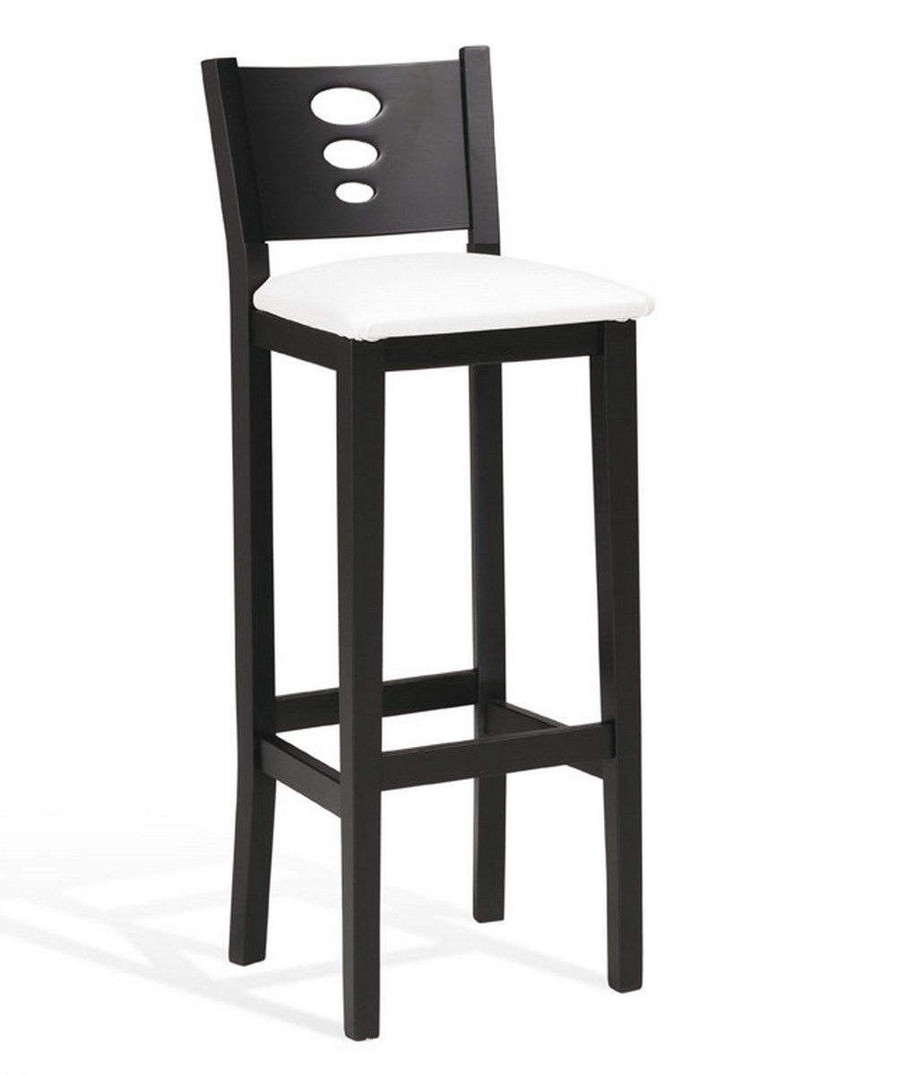 TABURETE CON ASIENTO TAPIZADO Y RESPALDO EN MADERA REFORZADO PARA CAFETERIAS