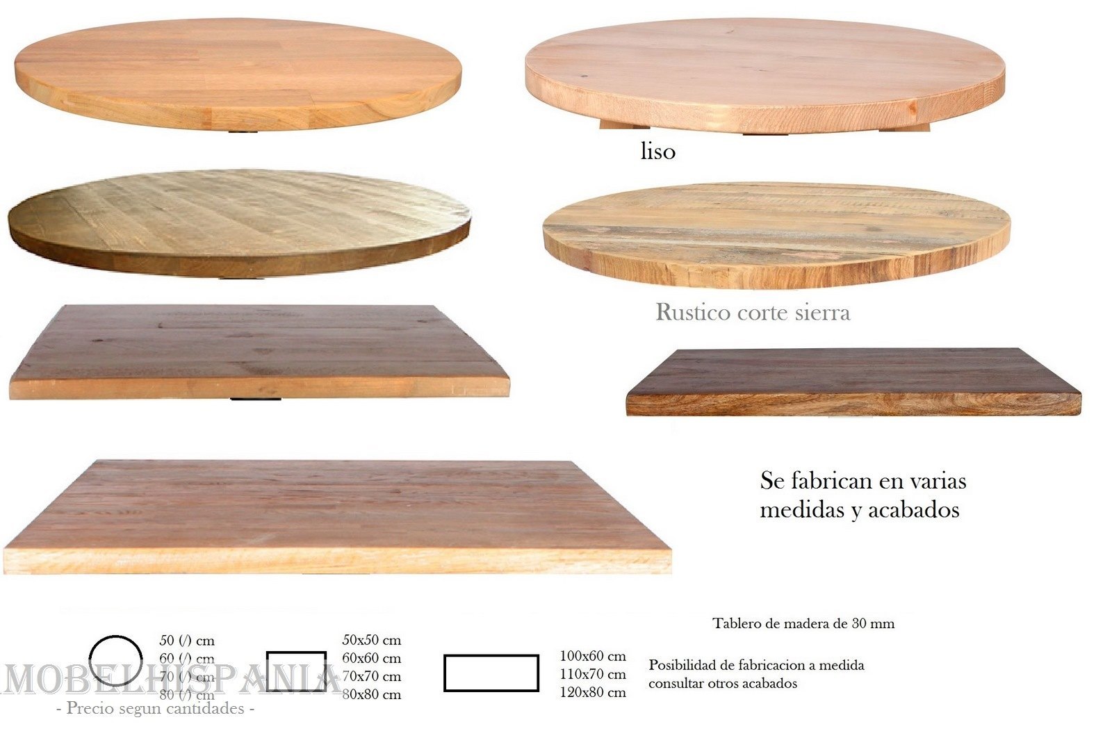 Varias medidas y acabados