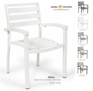 Sillon aluminio blanco asiento y respaldo lamas aluminio blanco Apilable Indicado para terrazas.hoteles y colectividades Uso en  terraza ...