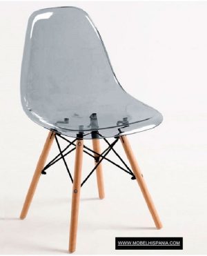 Silla de diseño, madera de haya, carcasa de polipropileno blanco, cojín de asiento en ...