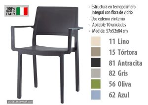 Sillon con brazos terrazas apilable exterior e interior
