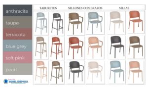 Silla de exterior apilable Estructura de tecnopolímero con agujeros en el respaldo. Fibra de vidrio reforzada. Tecnología de moldeo por aire. Disponible con y sin brazos Apilable hasta 10 unidades. COLORES : Lino blanca, Antracita,Azul ...