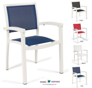 Asiento y respaldo en textilene en blanco,azul,rojo y negro