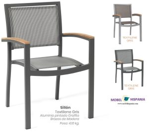 Sillon grafito aluminio, asiento y respaldo textilene gris