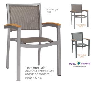 Sillon gris aluminio, asiento y respaldo textilene gris