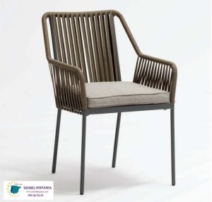 AG.6360 Sillon aluminio gris Asiento en cuerda taupe