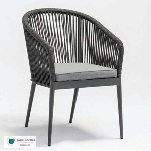 AG.6361 Sillon aluminio gri asiento trenzado en cuerda gris