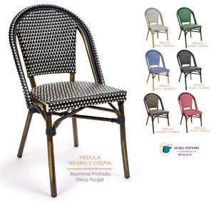 KM.8028 Sillas apilables parisina aluminio deco nogal asiento negro crema