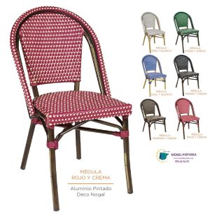 KM.8028 Silla de exterior parisina aluminio deco nogal asiento rojo crema