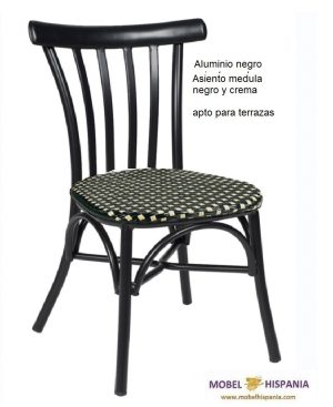 KM.163 Sillas de aluminio deco nogal , asiento medula negro y blanco