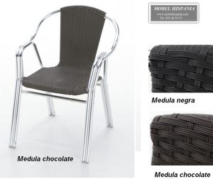 AG.6223 Sillon aluminio deco-madera rattan chocolate apilable