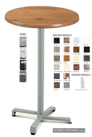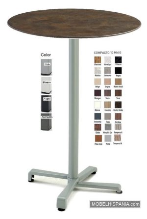 Mesa alta tapa compact pie aluminio interior y exterior en terrazas