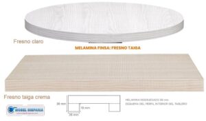 Tapas de mesas para cafeterias en melamina Fresno Taiga en 38 mm regruesado