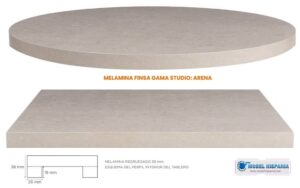 Tapas de mesas de bar en melamina studio arena en 38 mm regruesado