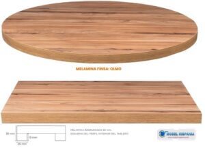 Tapas de mesas para restaurantes en melamina olmo en 38 mm regruesado