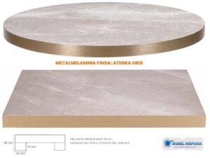 Tapas para mesas en metalmina atenea gris canto dorado en 38 mm regruesado