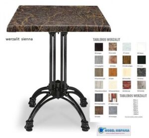 Mesa de werzalit pie de forja aluminio o hierro fundido