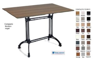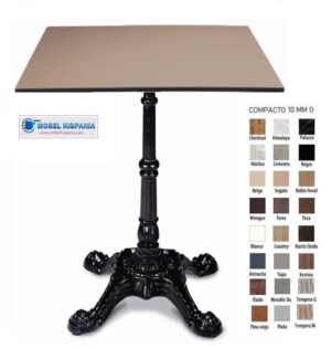 Mesa de compacto fenolico con pie de forja aluminio o hierro fundido
