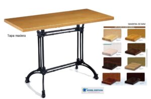 Mesa de madera pie de forja aluminio o hierro fundido