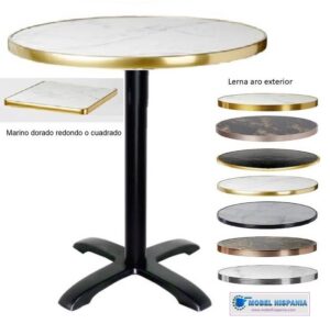 Mesas parisina bristo para bar pie central tablero marino lorna imita marmol aro dorado