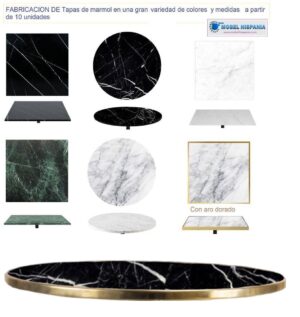 tablero con aro de laton dorado y tapa de marmol en varios colores y medidas