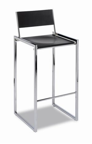 Taburete tapizado negro patas acero grafito