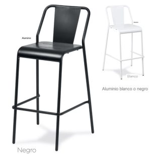 Taburete con respaldo de aluminio color negro o blanco