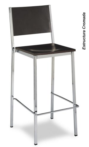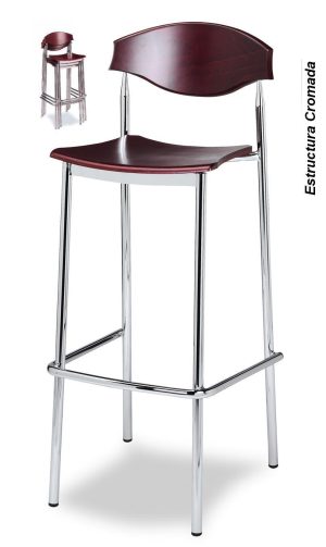 Taburete cromado acero asiento y respaldo madera