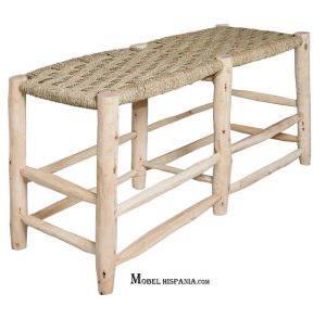KANDICE Taburete bajo en madera de laurel y asiento de palma