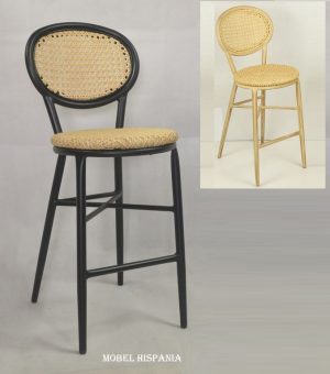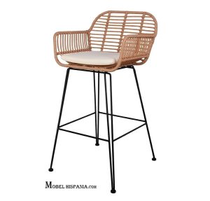 DAYSI Taburete alto estilo nordico metal asiento rattan natural