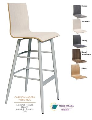 RB.393 Taburete aluminio blanco o gris asiento madera antartida
