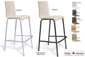 RB.392 Taburete metalico negro o gris asiento madera antartida