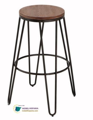 KM.4571 Taburete metalico deco madera natural asiento madera