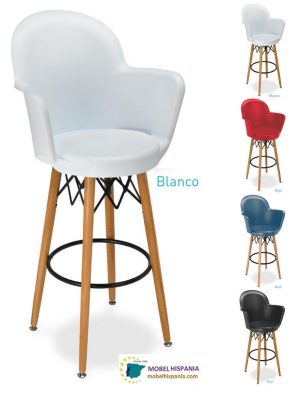 MV.5720 Taburete polipropileno blanco patas madera