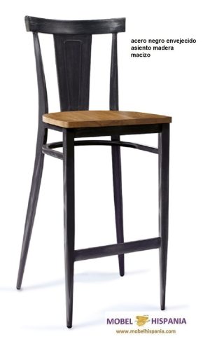 KM.185 Taburete metalico negro asiento macizo madera