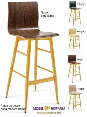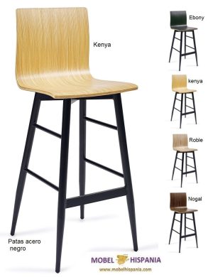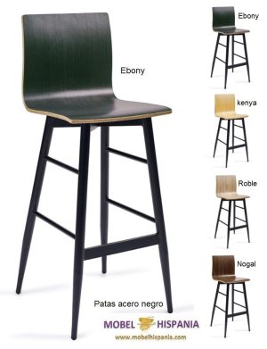 KM.185 Taburete metalico negro asiento laminado madera