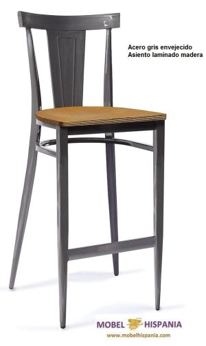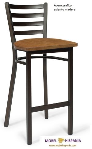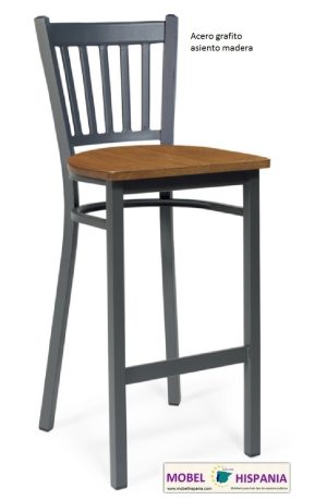 KM.186 Taburete metalico grafito asiento madera