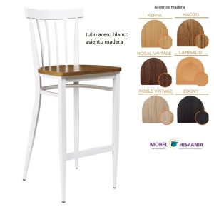 AG 5046B Taburete metalico industrial blanco asiento madera