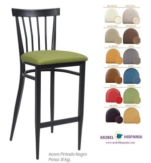 KM.259 Taburete respaldo metal negro asiento tapizado