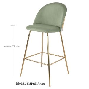KM.8229 Taburetes para hosteleria en aluminio nogal asiento medula verde y crema