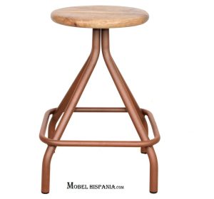 SINDEL Oxido Taburete industrial metal y asiento madera