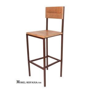 MADEIRA Oxido Taburete metal asiento y respaldo madera vintage
