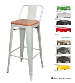 KM.259 Taburete respaldo metal blanco asiento laminado