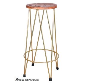 AG 5046BR Taburete bronce asiento madera estilo industrial