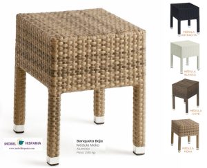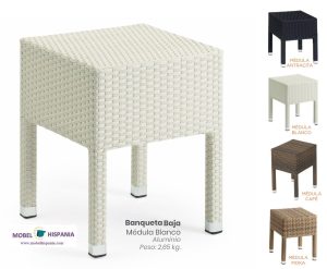 AG.5049BR Taburete bajo blanco metalico asiento bamboo