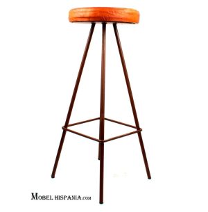 MV.5130 Taburete cuero patas metalicas conicas vintage