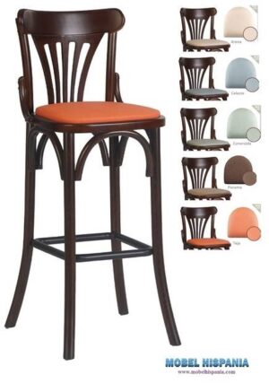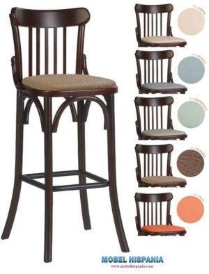 Taburete con respaldo estilo berlin  irlandes madera tapizada Nueva version mejorada en calidad y diseño Fabricada en madera de haya barnizada nogal Asiento madera tapizado en 5 colores tela vinilica de facil liempieza ...