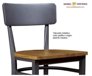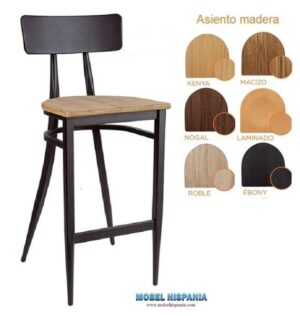 Taburete bar con respaldo metalico y asiento tapizado o madera uso interior Estructura  acero pintado en negro Asiento madera,tapizado y madera laminada Peso..8,05 kg disponemos de sillas y mesas a juego Iva no incluido Portes pagados ...